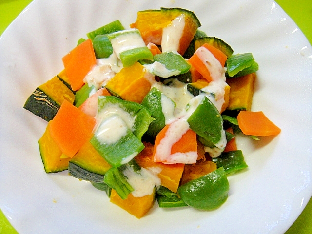 かぼちゃとピーマン人参の温野菜サラダ レシピ 作り方 By Mint74 楽天レシピ